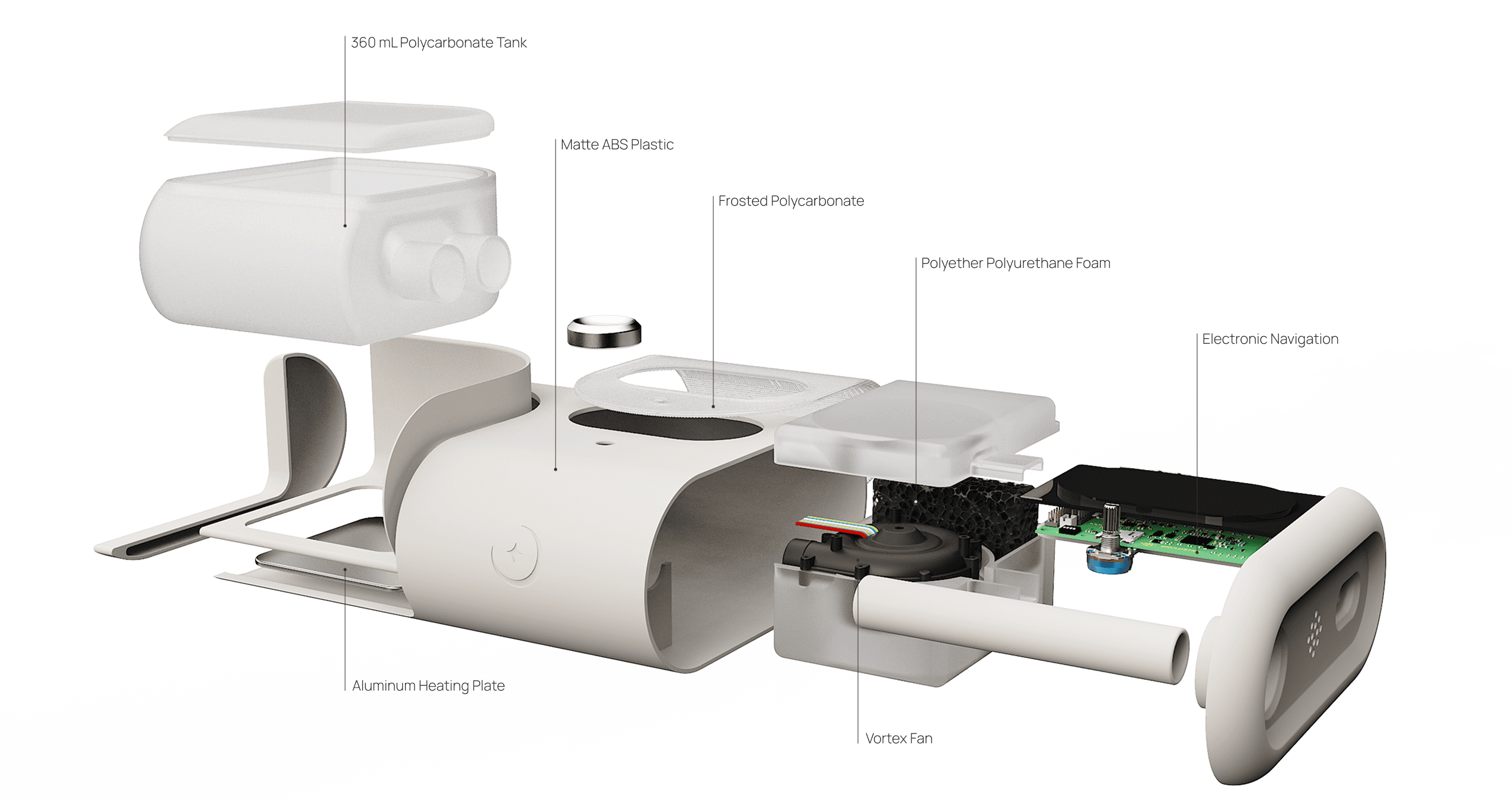 Nox has similar features to that of current CPAP machines, but uses a vortex fan. It has one main knob for control, reducing errors that are often attributed to touch screens. The water reservoir is fairly open with rounded corners for easy cleaning.